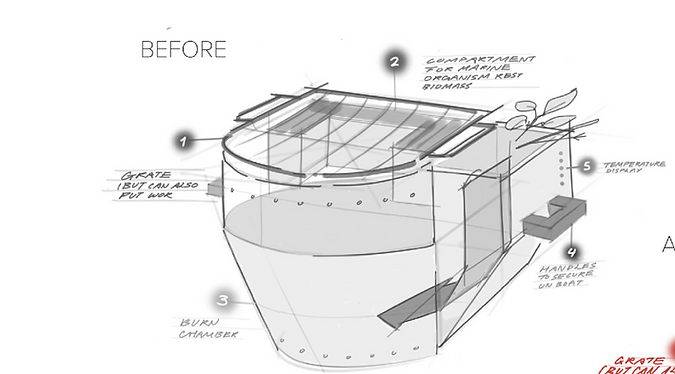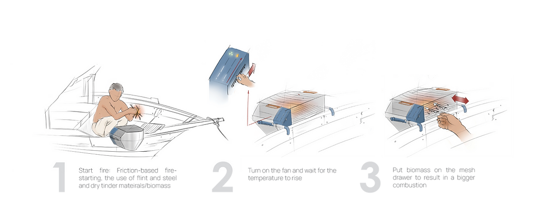 ADRIFT is a stove designed for boat dwellers cooking at the stern, addressing safety risks of open fires in confined spaces. The design prioritizes simplicity, stability, and semi-portability for ease of use.