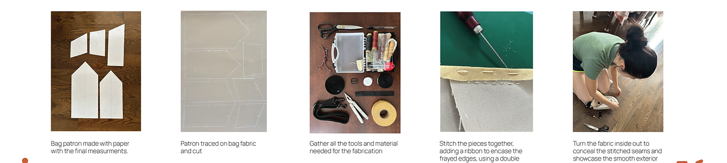 Different shapes, zipper placements, and attachment types were explored to make the bag as user-friendly as possible. After determining the optimal measurements, the first paper prototype was created.